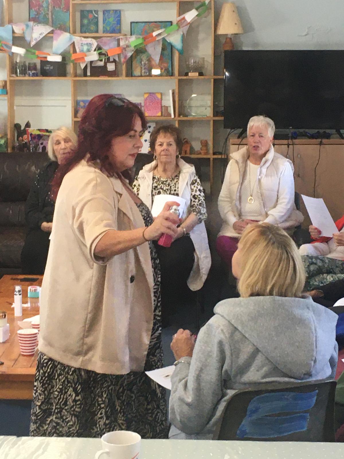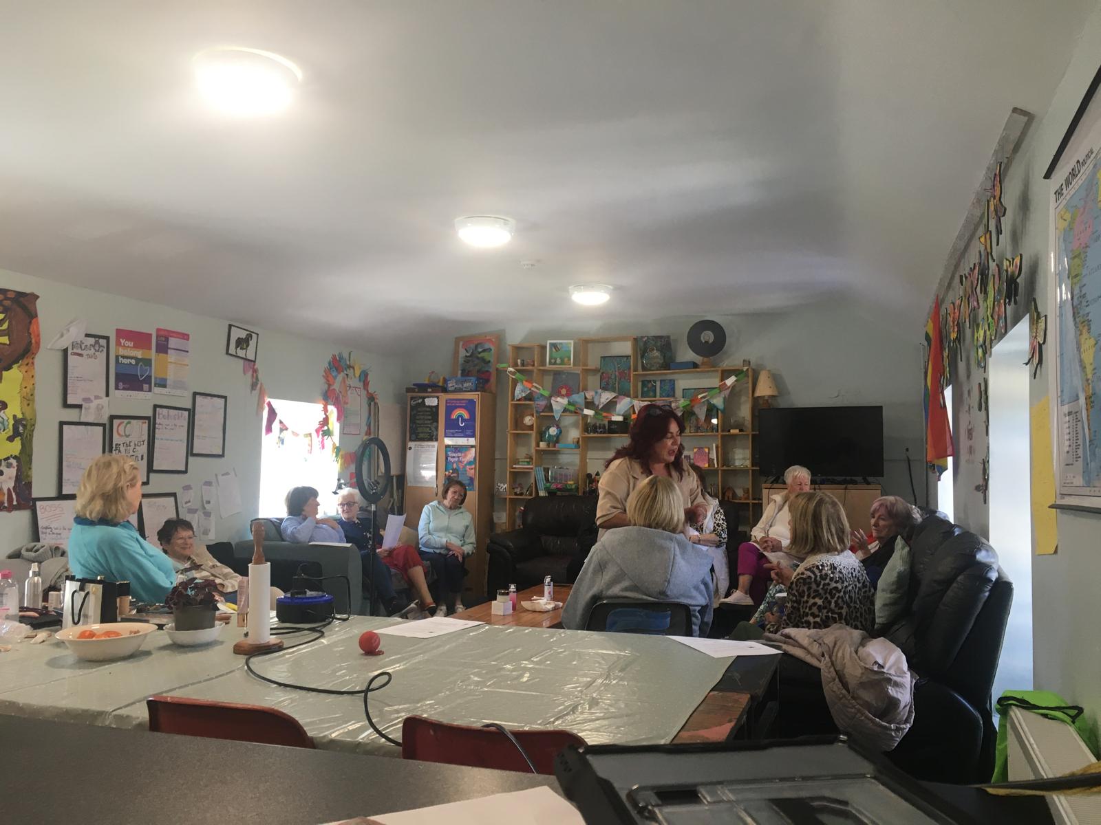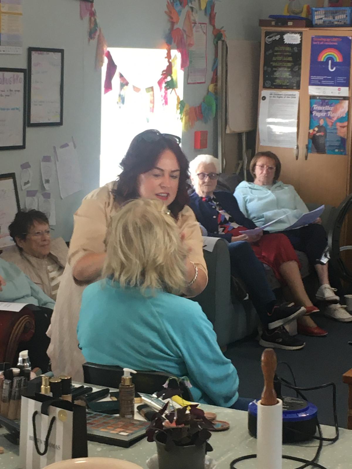 Our Sept coffee morning had guest speaker Angie Budden, who demonstrated the art of cosmetic selection and application. Angie has returned to the estate she grew up in, and so there was a warm welcome for her. The first act was to select a volunteer who was going to be made over, and Mrs Eileen Twomey fulfilled that role well. In the process, we learned all about products such as serum, moisturiser, eye cream, hydration spray, primer, powder etc. Very complicated it seemed to me (as a man).