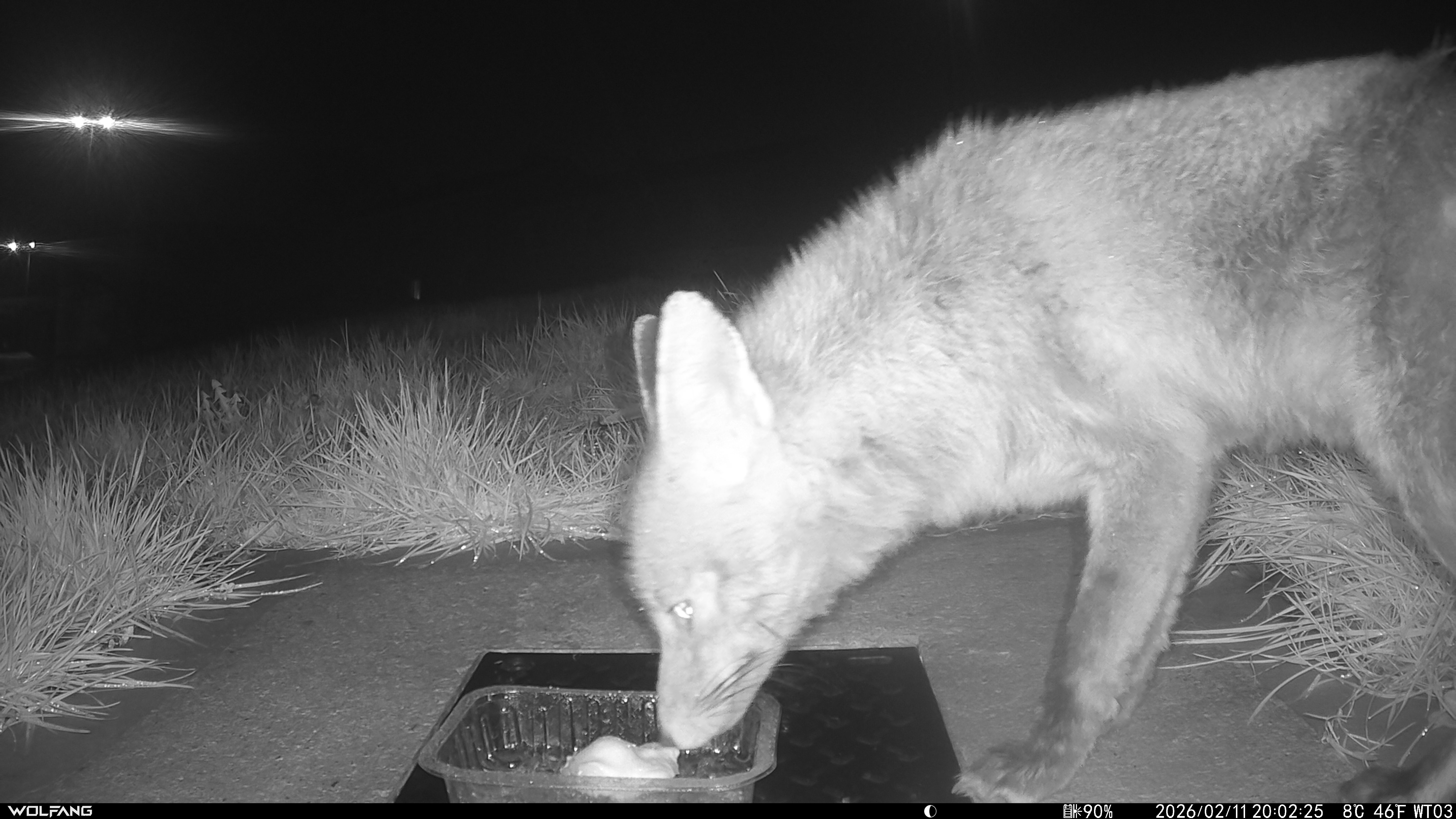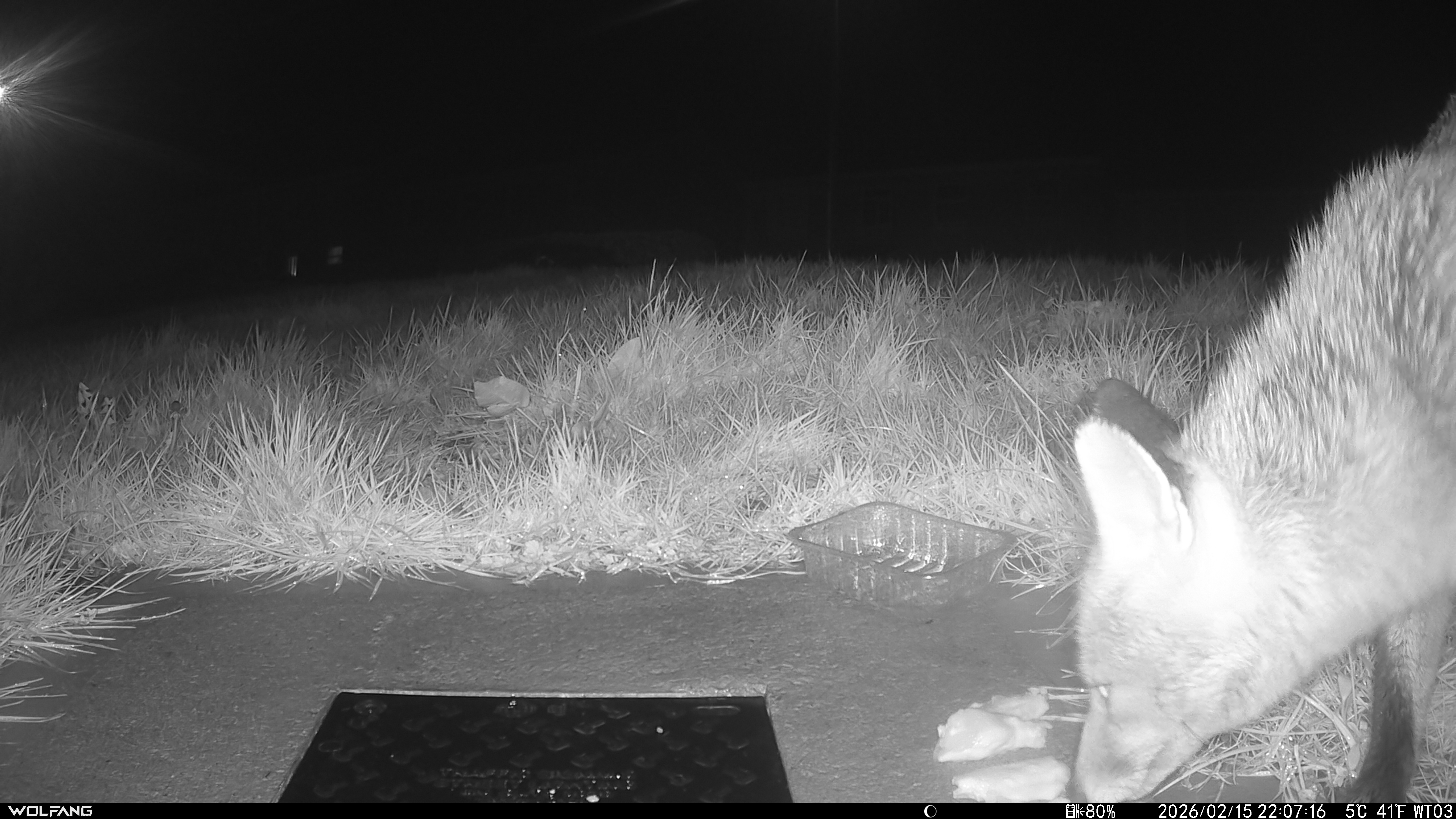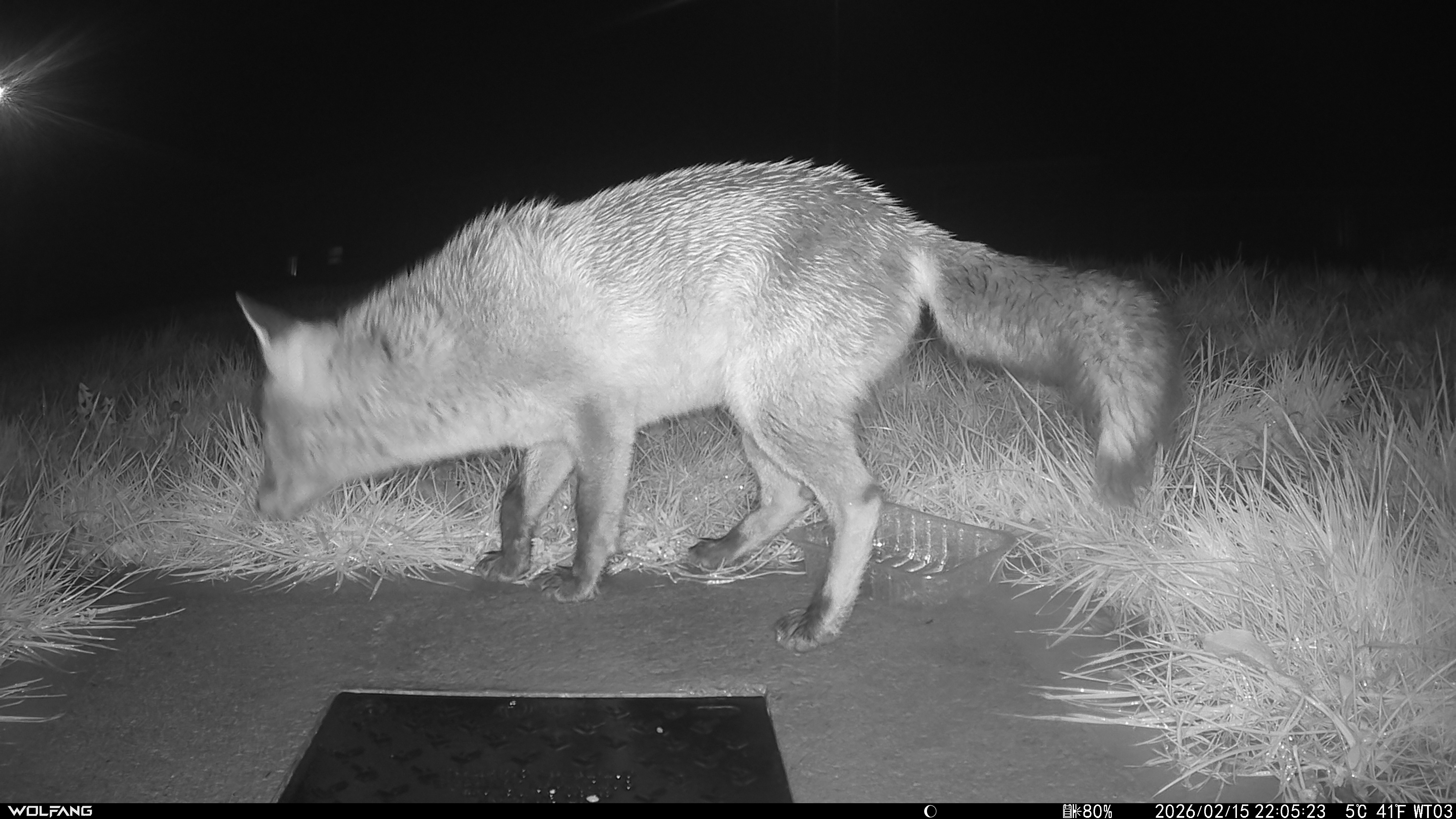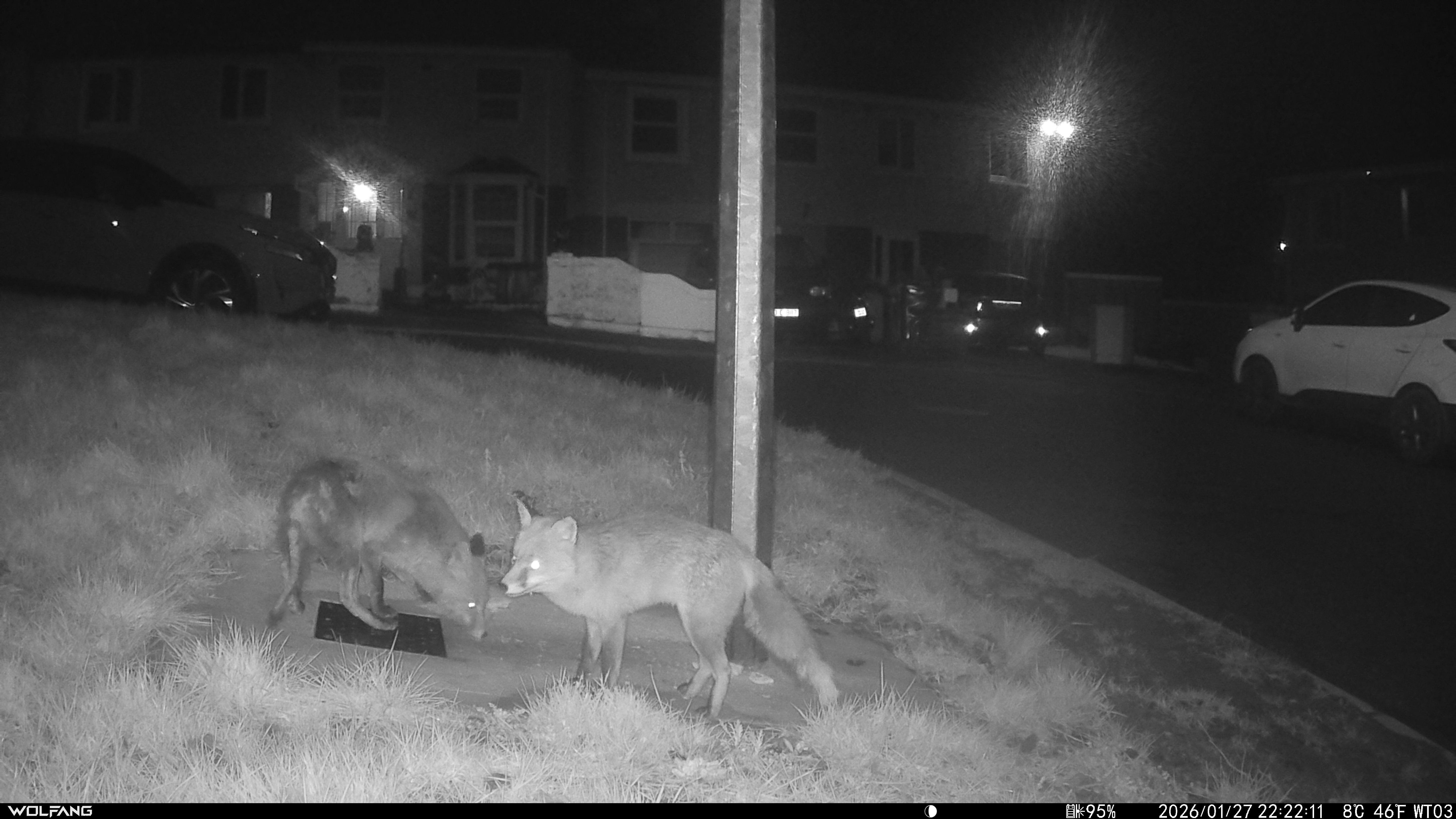 It seems that there are currently two foxes around the estate, coming out each night. These photos were taken with a wildlife camera and some food. One thing that we noticed was that one of the foxes had mange, which is a disease caused by mites. It results in significant hair loss. Since verifying this, we have obtained some medicine from a local vet and put it in their food. We wait and hope to see some improvements.