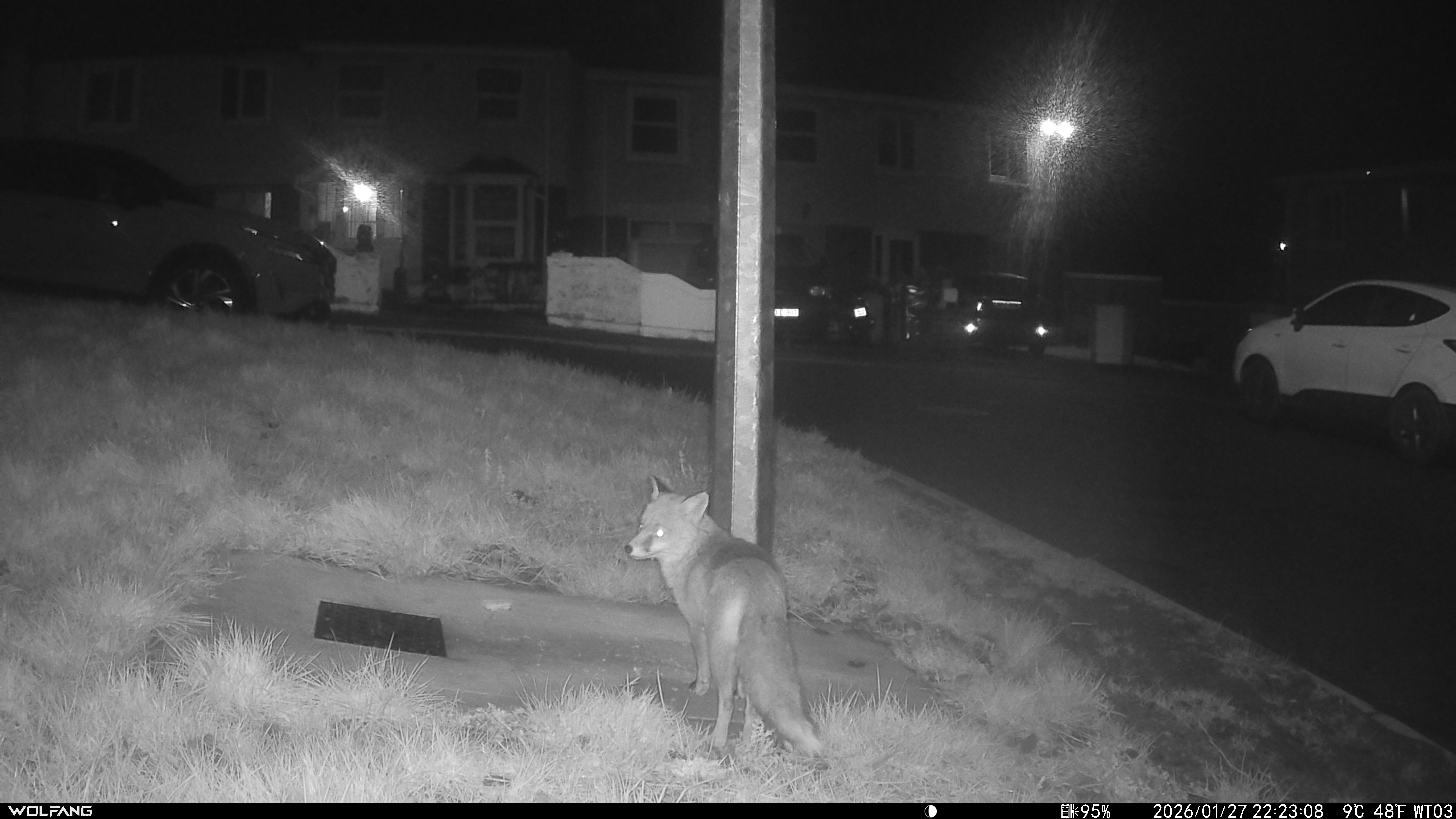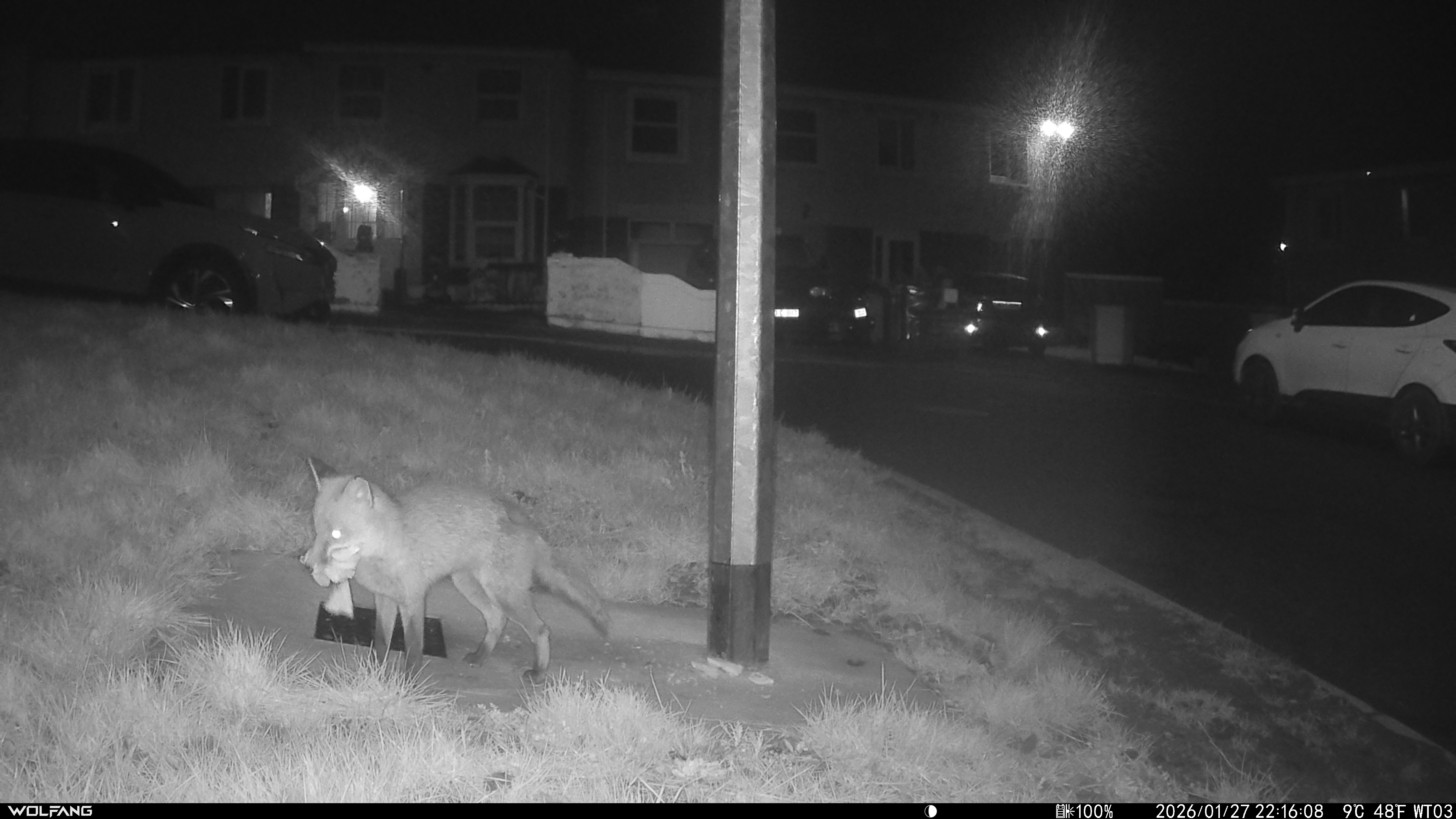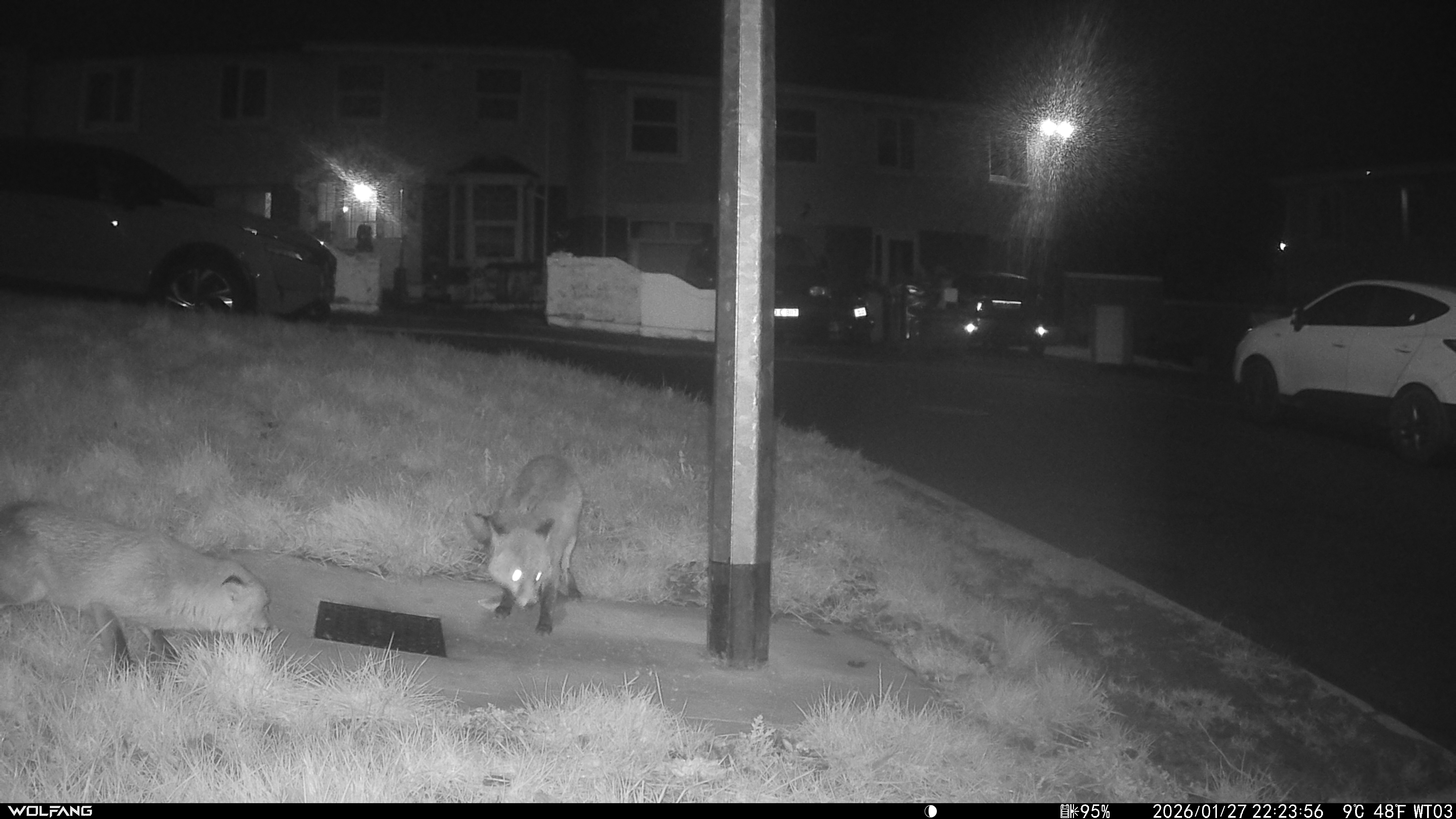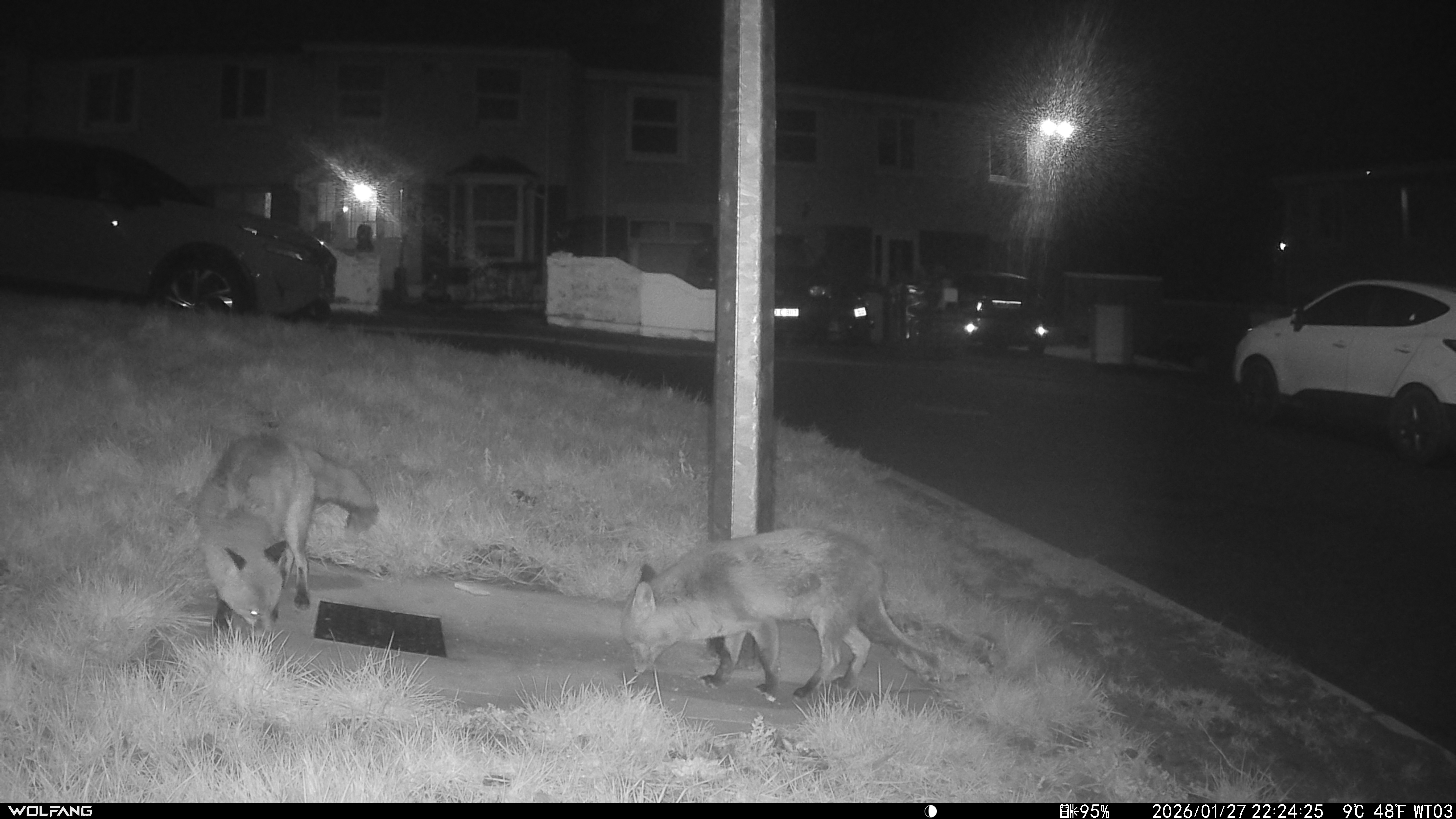 It seems that there are currently two foxes around the estate, coming out each night. These photos were taken with a wildlife camera and some food. One thing that we noticed was that one of the foxes had mange, which is a disease caused by mites. It results in significant hair loss. Since verifying this, we have obtained some medicine from a local vet and put it in their food. We wait and hope to see some improvements.